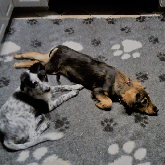 She thrived in the company of other dogs, and having a calm, confident companion played an important role in helping her settle and build confidence. While she was comfortable resting in a crate overnight for short periods, she was not suited to being left alone for extended lengths of time.